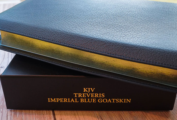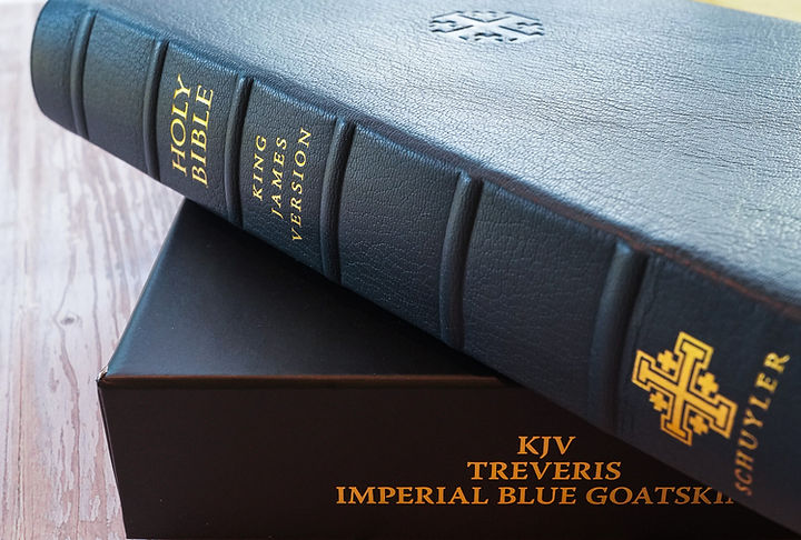 I purchased the Imperial Blue Goatskin. It’s a different blue that is absolutely gorgeous. However, they have a wide-range of Bible styles and colors. Schuyler is sold by Evangelical Bible in Virginia and come in various translations (KJV, NKJV, ESV, NASB, NIV, CSB, NLT and RSV). Evangelical Bible also sells Bibles by Schuyler, Zondervan, Cambridge, Allan, TBS, Lockman, Crossway, Holman, and Thomas Nelson.