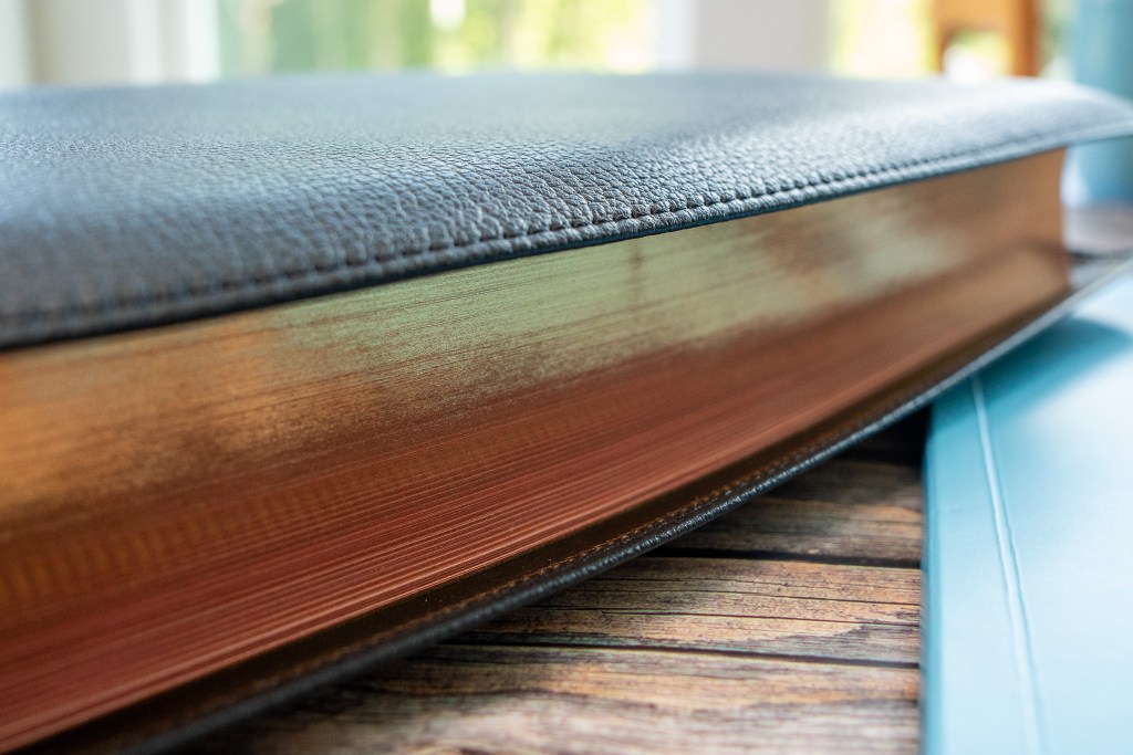 A few weeks ago, I received the goatskin Giant Print Edition LSB. It is absolutely gorgeous. For my tired, older eyes, the 13pt. font is easy to read even without my glasses. I was concerned that it would look too big, but it doesn’t. The paper is 32 GSM and is a slight yellow which makes the black print stand out. The typesetting is by 2K/Denmark, which does the typesetting for several premium Bibles. It is lined match, and the opacity of the paper is such that you only have a slight amount of ghosting, which I don’t really notice. The ink is consistent, with book names and chapter headings in a nice red that is a great contrast to the black text of the verses.