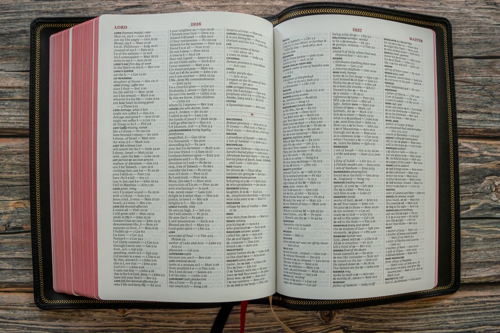 The leather is soft and supple. It lays comfortably in your hand as if saying “this is where I belong” inviting you to eagerly engage each page. Wherever you open it, it stays open even when placed on a flat surface (although personally I love the feel of it so much I don’t want to put it down). It has red-under-gold gilding, smyth-sewn edge-lined binding with lined cowhide inside. It is premiered stitched, so this is a Bible that will last for a very long time. While mine is goatskin, there is a paste-down cowhide edition as well, and a paste-down faux leather version, and a hardcover edition. All of which have the same print and are the same on the inside. There are 95,000 cross-references and 14,000 translation footnotes. There is a concordance with 16,000 plus words, 8 full maps, a table of weights, measurements and currency.