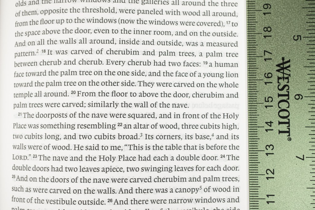 As I opened and turned each page of this Bible, I was captivated by the smooth texture and fine quality of the European Bible paper. The words, printed with precision by Royal Jongbloed in the Netherlands at 9.25 pt Lexicon font are easy to read, which call the reader to embark on a deeper spiritual journey. And, the single-column format makes it feel like a Readers Bible, but with small verse numbering that is not distracting.