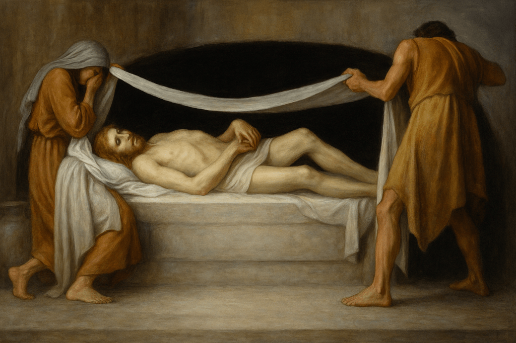 On Easter Sunday, the silence breaks. The tomb is empty, and the Shroud remains—folded, left behind, bearing witness. In John 20:6–8, Peter and John enter the tomb and see the linen cloths. John writes that he saw and believed. The Shroud of Turin may be one of those cloths—an enduring visual echo of belief.