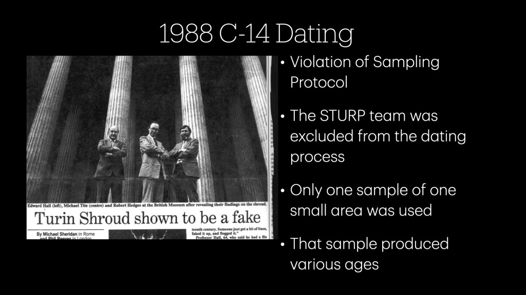 But here’s the problem. That corner was later found to contain cotton interwoven with linen — likely from a medieval repair. The STURP team wasn’t involved in the process, and only one site on the cloth was tested, violating the original sampling protocol, which required multiple areas.