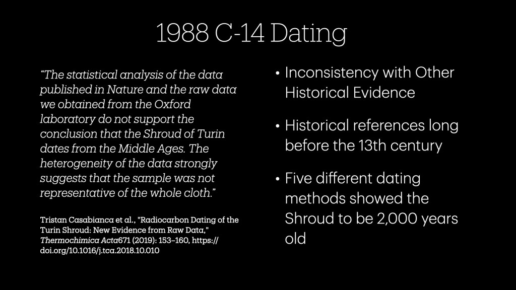 This means the 1988 date cannot be taken as definitive. Later studies — including chemical analysis, textile studies, and historical evidence — point instead toward a first-century origin.
