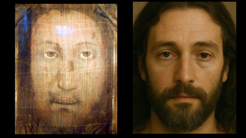 To explore this further, AI composites were created separately from each image. The resulting reconstructions highlight the continuity between the two — subtle differences, but striking harmony. Displaying the two AI-generated faces next to each other evokes a sense of transformation: one image speaks of death and sacrifice; the other hints at life and resurrection. This raises a profound question: are these two relics snapshots of the same man, captured in two defining moments — burial and victory over death?