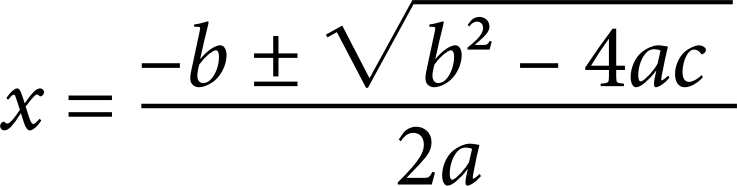 The quadratic equation always resolves. No matter what values you put into a, b, or c, it produces two solutions, called roots. These roots are given by the famous quadratic formula: